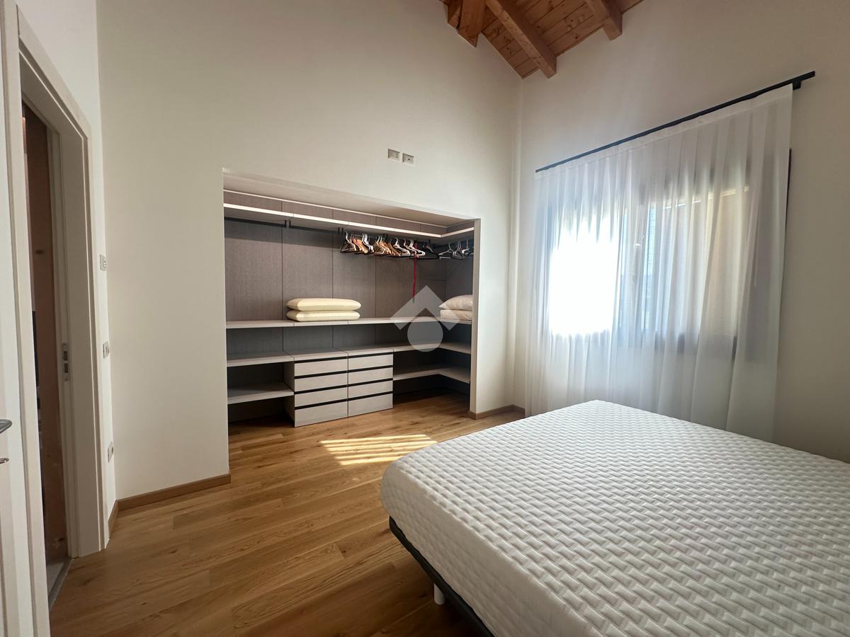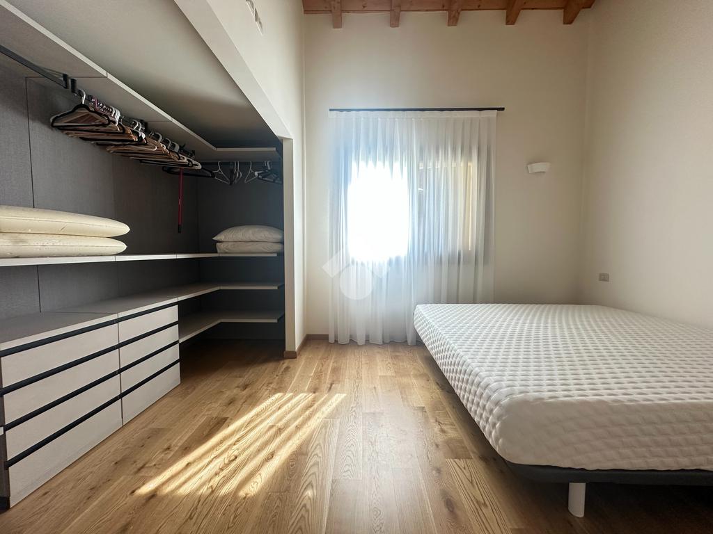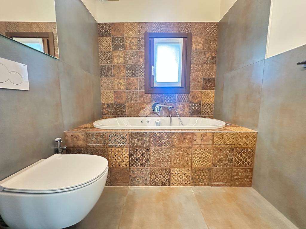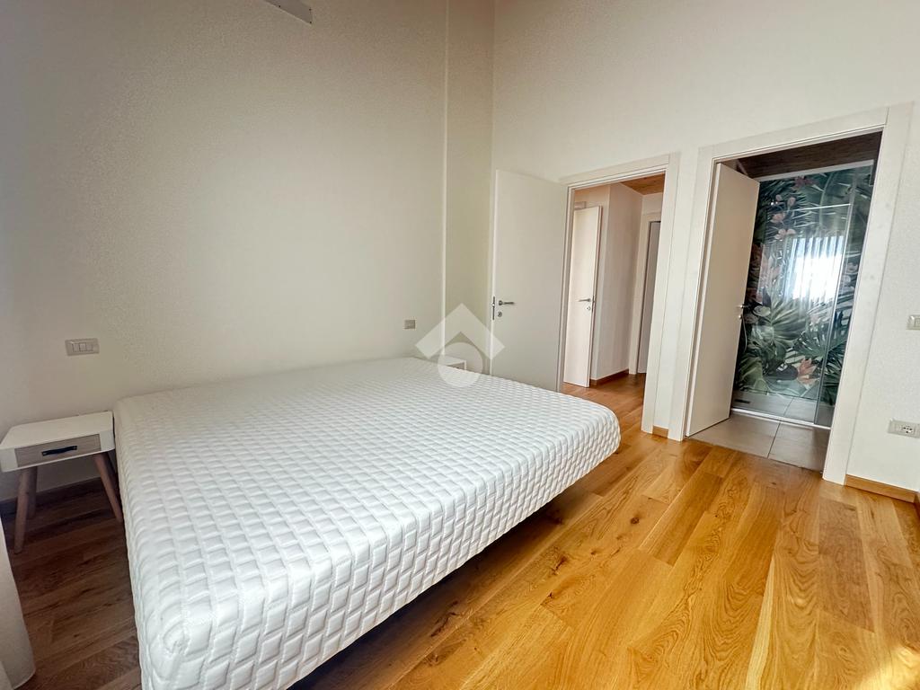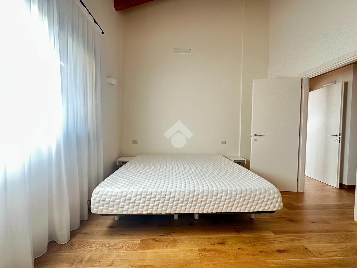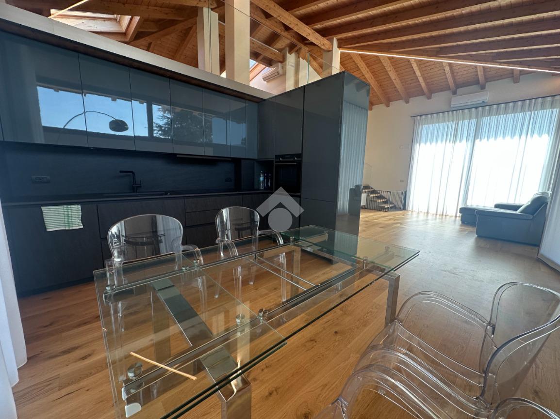 Internamente l'immobile è così suddiviso: ampio e luminoso salone, valorizzato da grandi vetrate scorrevoli che creano continuità tra interno ed esterno, cucina abitabile separata, camera matrimoniale padronale con bagno finestrato en suite (box doccia) e spaziosa cabina armadio, seconda camera matrimoniale, servizio finestrato padronale con vasca idromassaggio, ripostiglio e vano lavanderia. Il piano primo soppalcato, con affacci interni e illuminato da lucernari Velux, ospita un elegante open space ideale come terza camera, studio o area relax/accessoria.