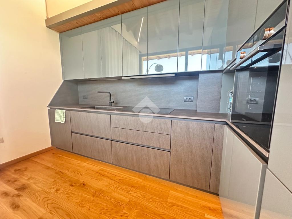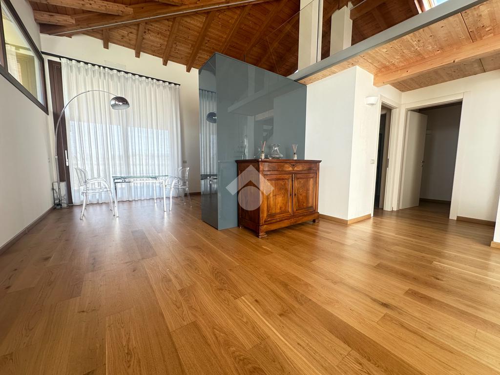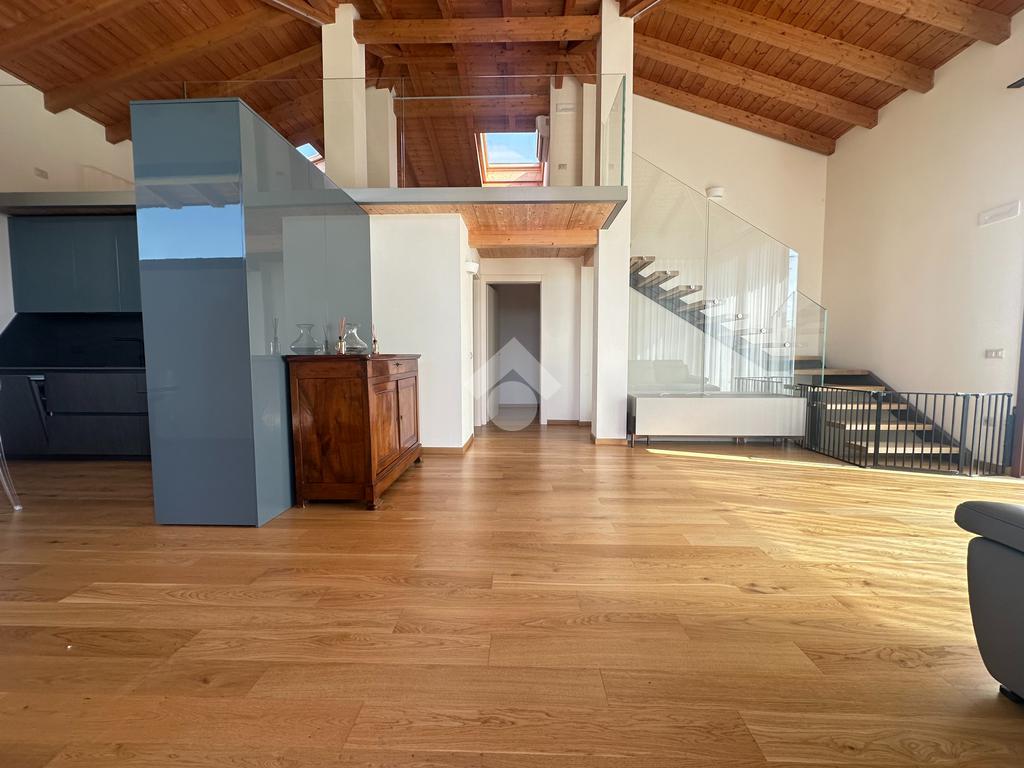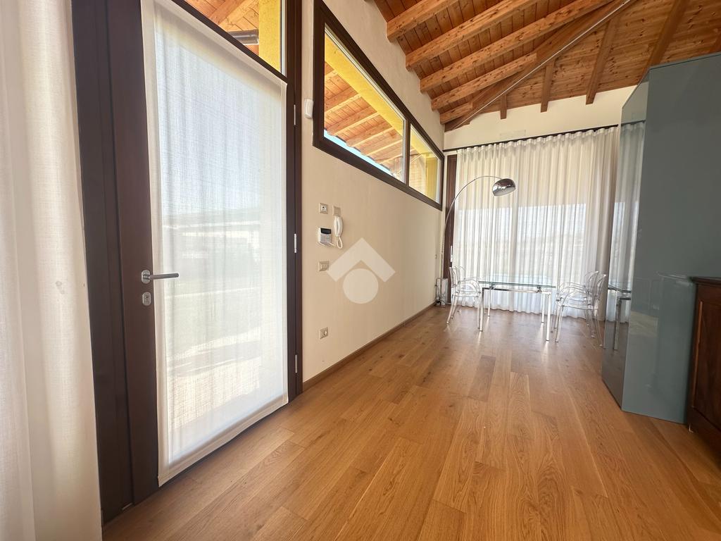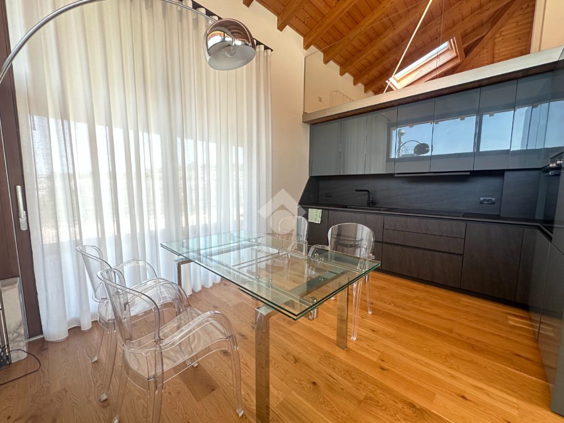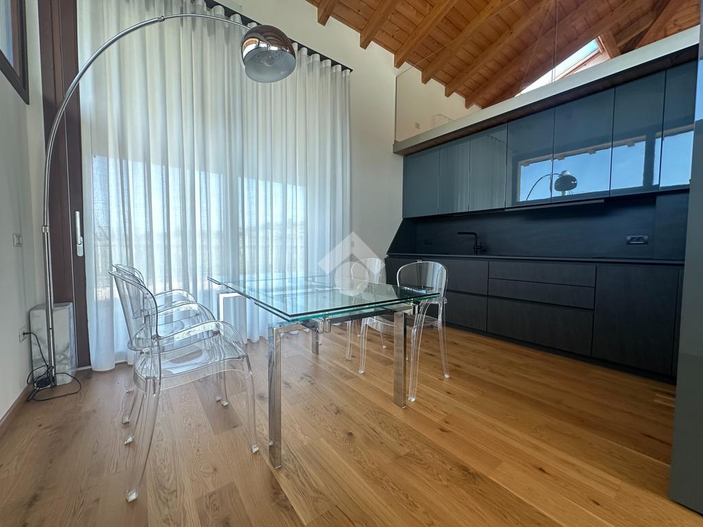 Internamente l'immobile è così suddiviso: ampio e luminoso salone, valorizzato da grandi vetrate scorrevoli che creano continuità tra interno ed esterno, cucina abitabile separata, camera matrimoniale padronale con bagno finestrato en suite (box doccia) e spaziosa cabina armadio, seconda camera matrimoniale, servizio finestrato padronale con vasca idromassaggio, ripostiglio e vano lavanderia. Il piano primo soppalcato, con affacci interni e illuminato da lucernari Velux, ospita un elegante open space ideale come terza camera, studio o area relax/accessoria.