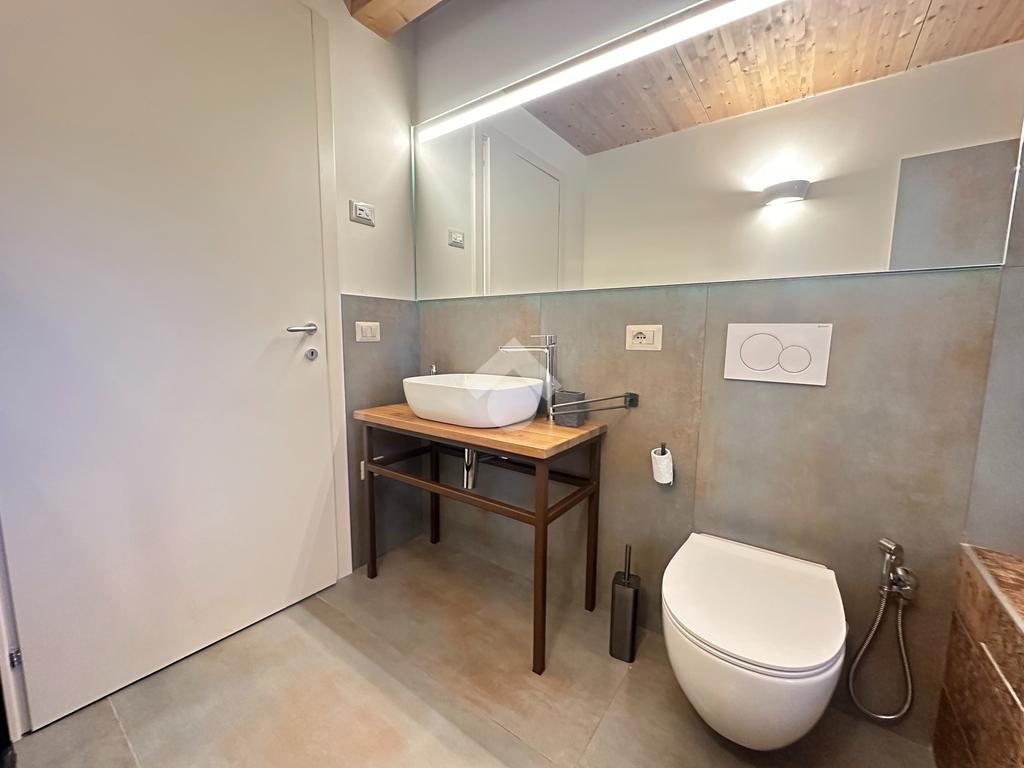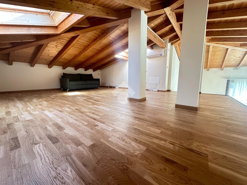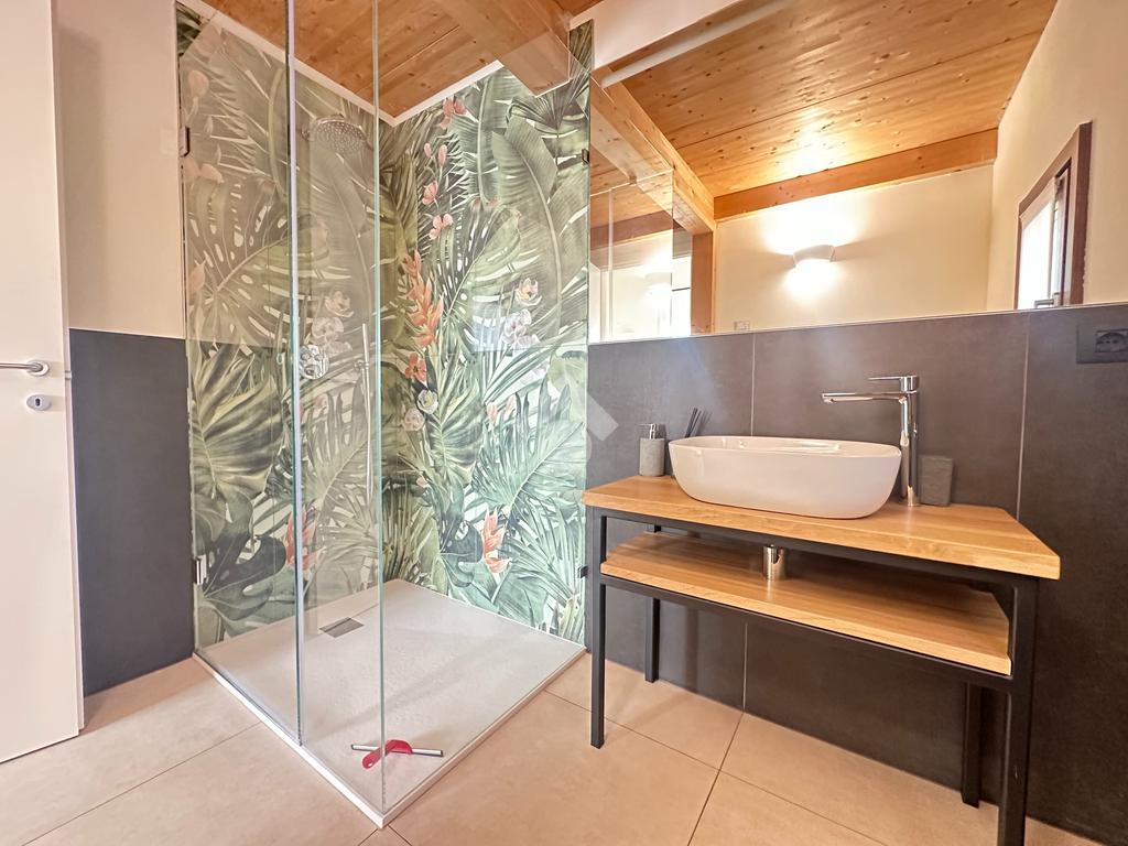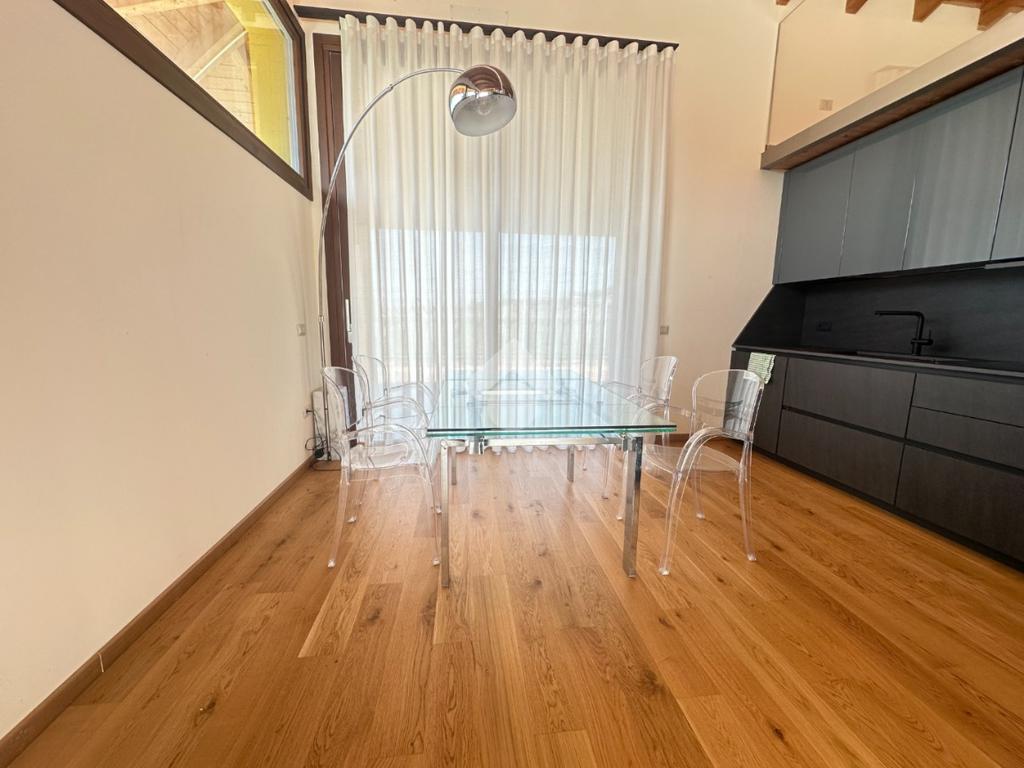L’immobile si sviluppa su una superficie commerciale di 172 mq, distribuita su due livelli fuori terra, con eleganti travature a vista in legno che conferiscono calore e raffinatezza agli ambienti.